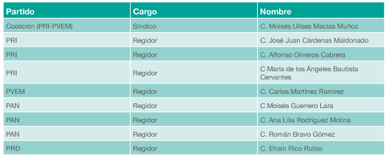 • En su municipio se encuentra fungiendo como director de Desarrollo Social, Octavio Licea, hermano del Primer Edil; así como Beatriz Muñoz Martínez, con el cargo de Tesorera Municipal, mamá del Síndico del Ayuntamiento, Moisés Macías.