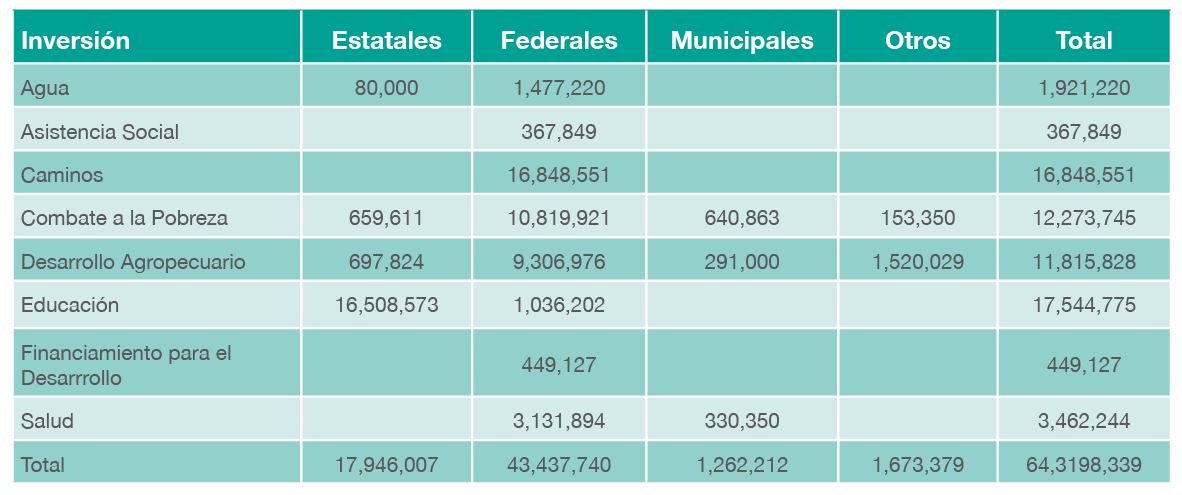 • Red Caminera Rural: Municipal 77.80 Km. Estatal 6,729.40 Km.
