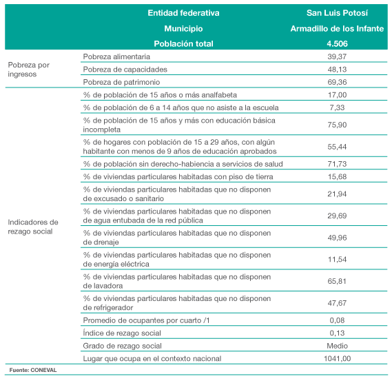 El Municipio tiene un nivel de rezago social medio.