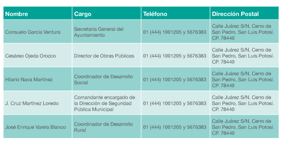 Correo: presidencia@municipiocerrodesanpedro.gob.mx