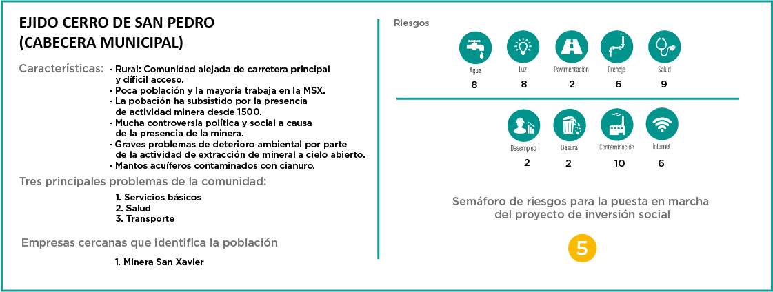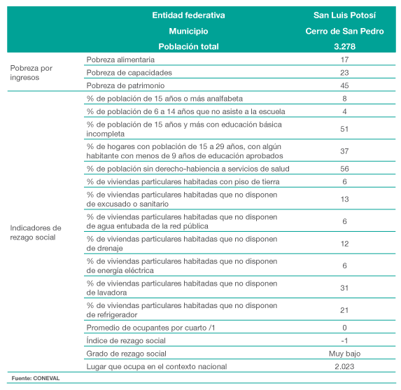 • Debido al cese de la explotación minera en esta demarcación, se prevé una pérdida de 600 empleos directos y un número indeterminado de empleos indirectos, anunció la presidenta del municipio de Cerro de San Pedro, Rosaura Loredo Loredo. A ello se suma la falta de transporte público eficiente.