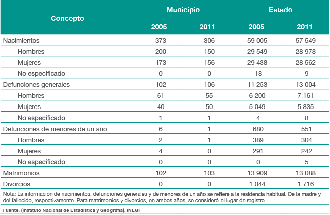 De acuerdo al Censo de Población y Vivienda 2010 efectuado por el INEGI, la población total del municipio es de 14,876 habitantes. Representando el 0.58 por ciento, con relación a la población total del estado.