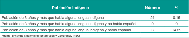 Nula población indígena, se tienen registrados 21 personas, según el último censo.